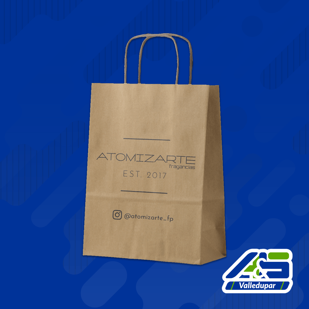 Bolsas de papel de 90 gr y 115 gr kraft, En 3 diferentes tamaños y 9 referencias para elegir el color. Con manigueta muy resistente.